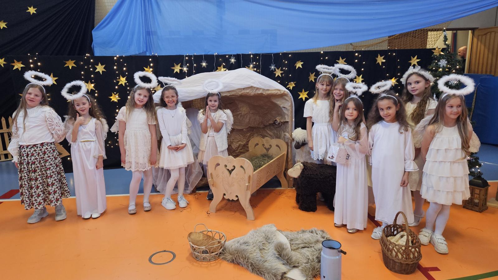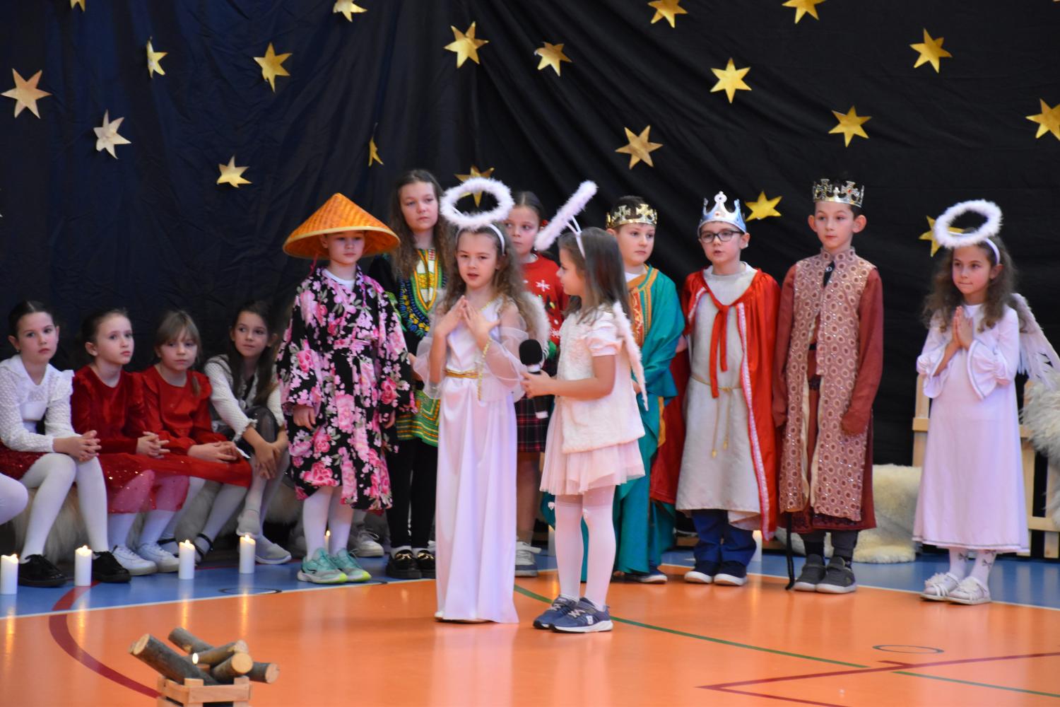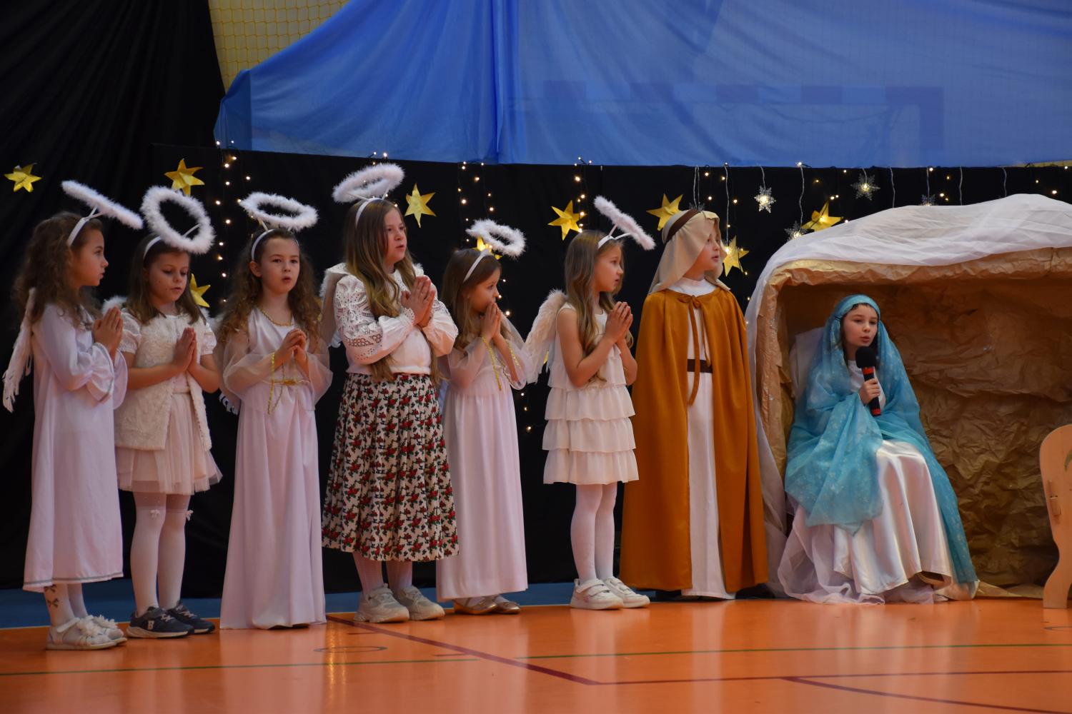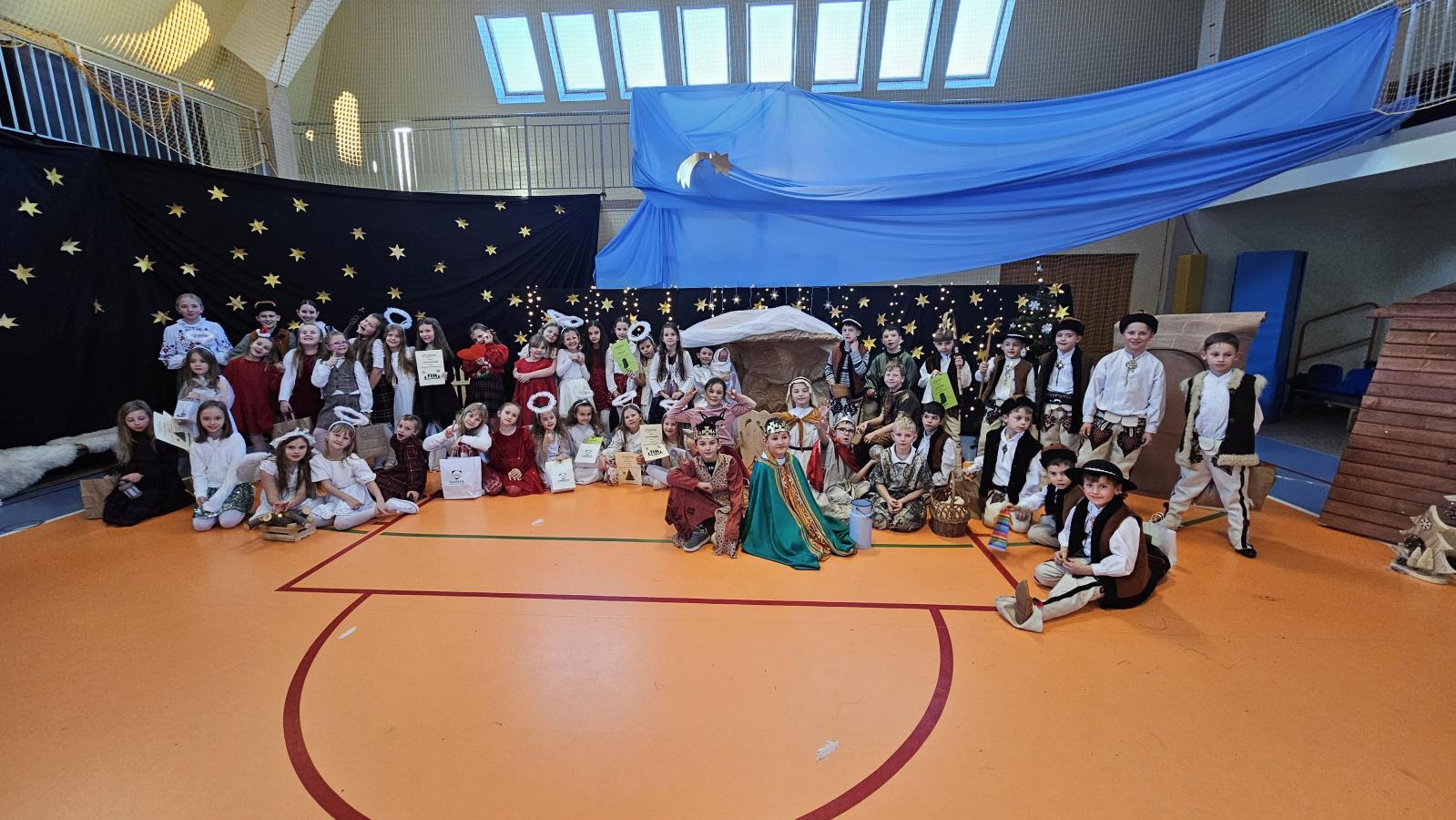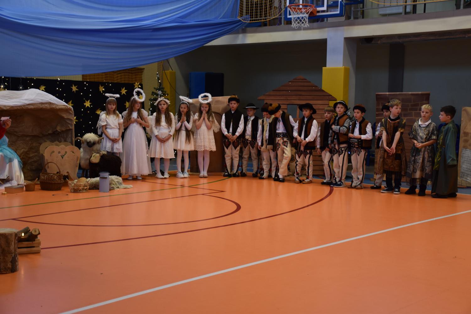 Uczniowie pięknie recytowali swoje kwestie, śpiewali kolędy i pastorałki, a całości dopełniała starannie przygotowana scenografia oraz świąteczne stroje. Aniołki i recytatorki zatańczyły nastrojowy taniec ze świecami, który wprowadził widzów w wyjątkowy, świąteczny nastrój. Z kolei pasterze zaprezentowali energiczny taniec zbójnicki, wzbudzając duży entuzjazm publiczności.