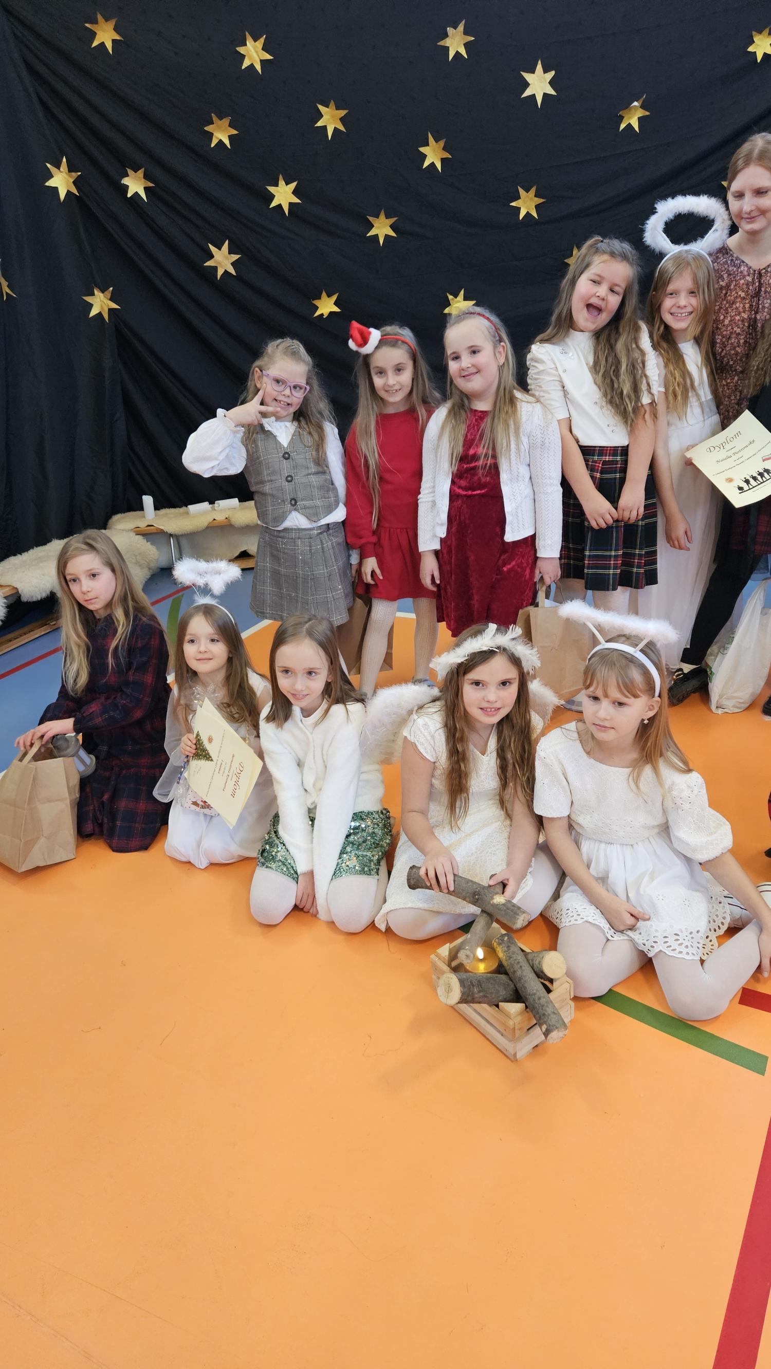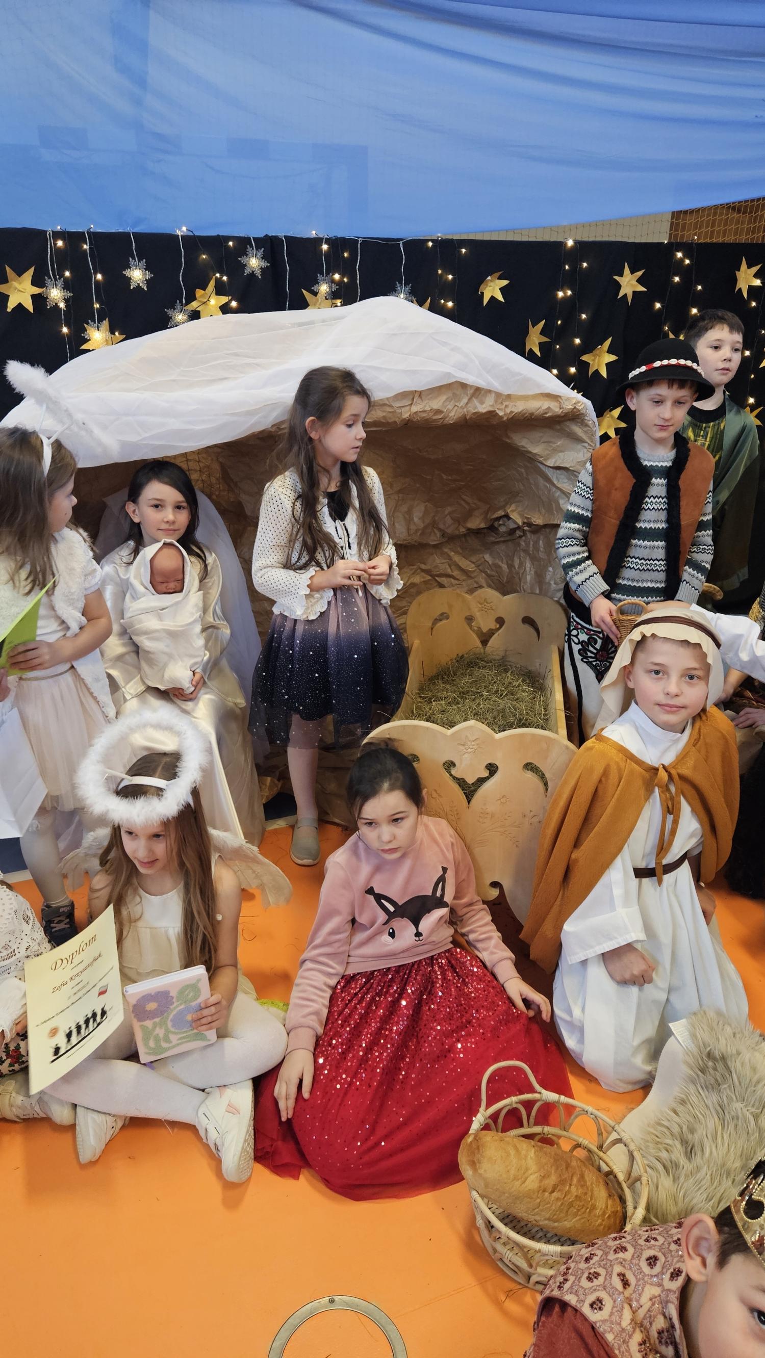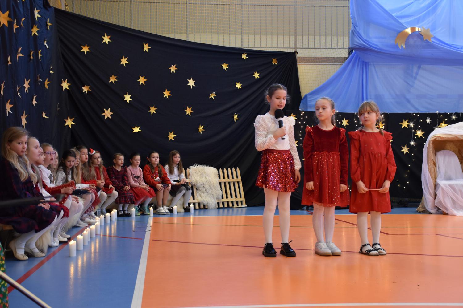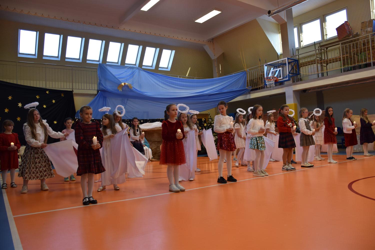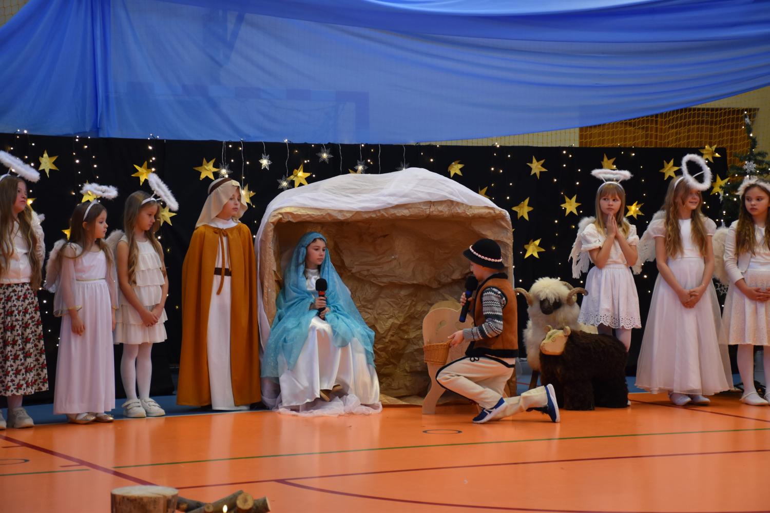 Uczniowie pięknie recytowali swoje kwestie, śpiewali kolędy i pastorałki, a całości dopełniała starannie przygotowana scenografia oraz świąteczne stroje. Aniołki i recytatorki zatańczyły nastrojowy taniec ze świecami, który wprowadził widzów w wyjątkowy, świąteczny nastrój. Z kolei pasterze zaprezentowali energiczny taniec zbójnicki, wzbudzając duży entuzjazm publiczności.