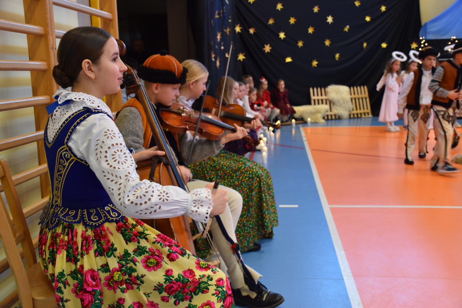 Podczas przedstawienia przygrywała kapela góralska, która nadała jasełkom niepowtarzalny, regionalny charakter. Nie zabrakło również tradycyjnego góralskiego winszowania, które było pięknym zwieńczeniem występu. Nad oświetleniem oraz oprawą muzyczną czuwało szkolne kółko DJ.