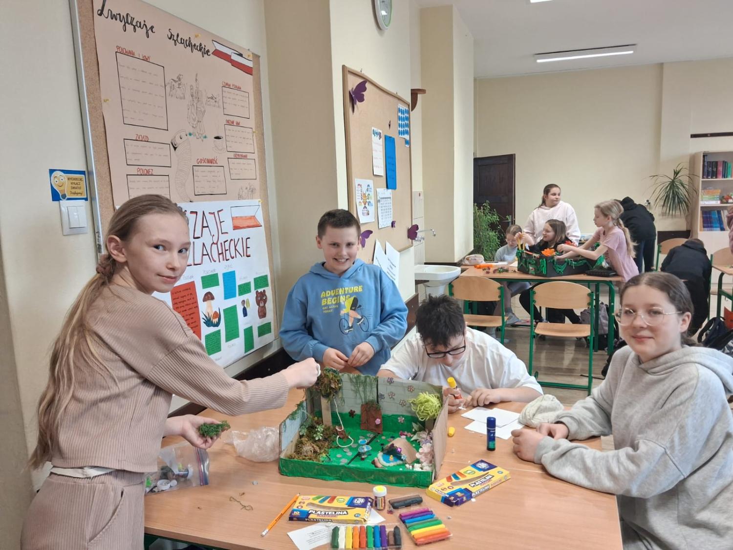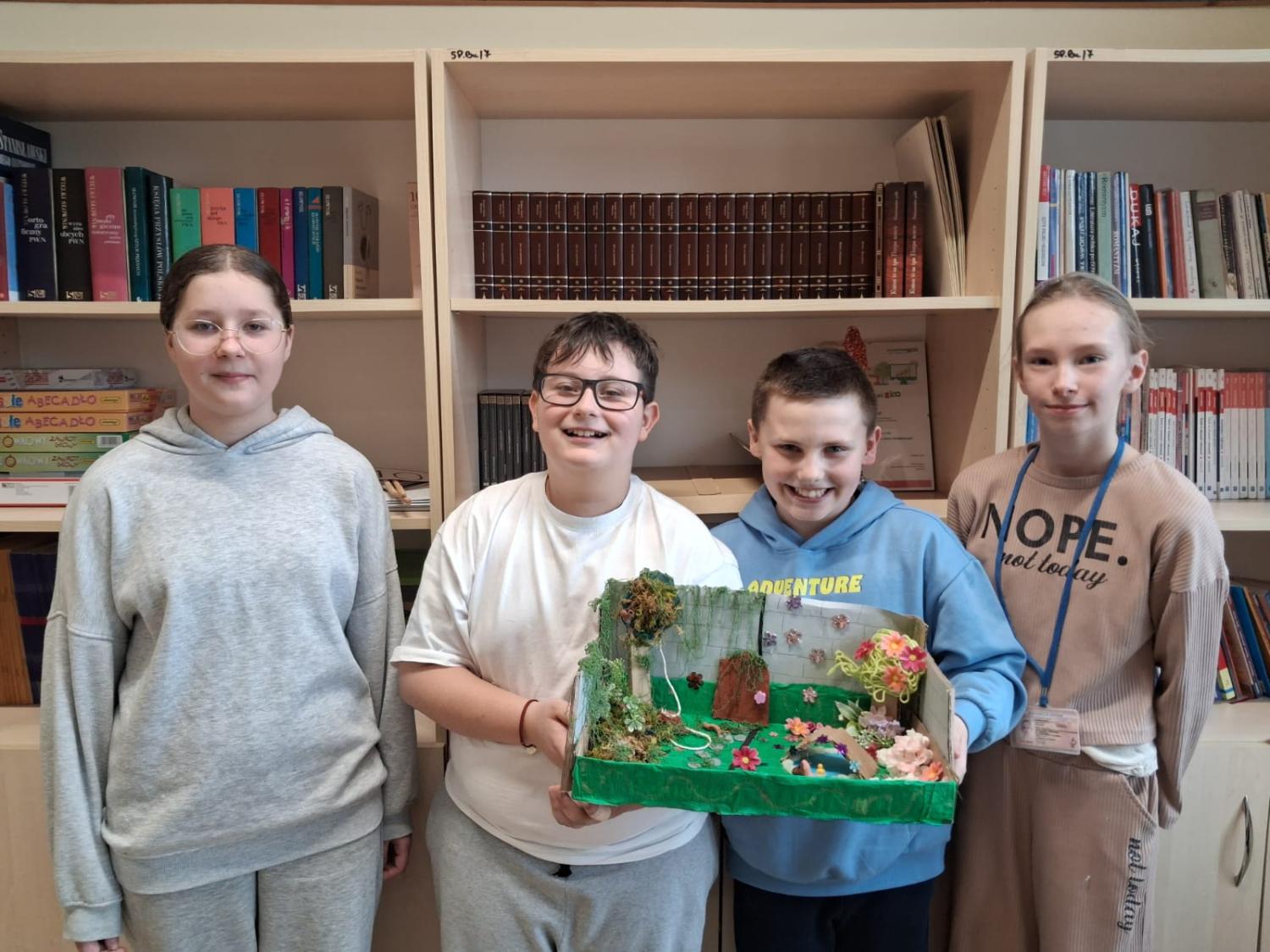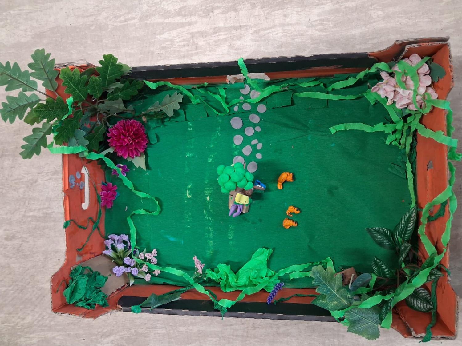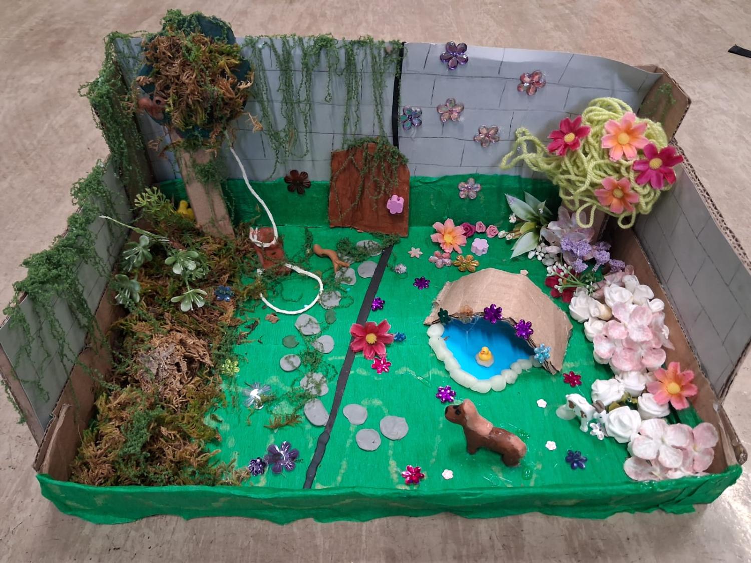 Powstałe makiety były bardzo różnorodne i pomysłowe – pełne zieleni, kwiatów i drobnych detali oddających atmosferę tajemniczego miejsca. Projekt pozwolił uczniom połączyć czytanie lektury z twórczą pracą plastyczną oraz refleksją nad jej przesłaniem.