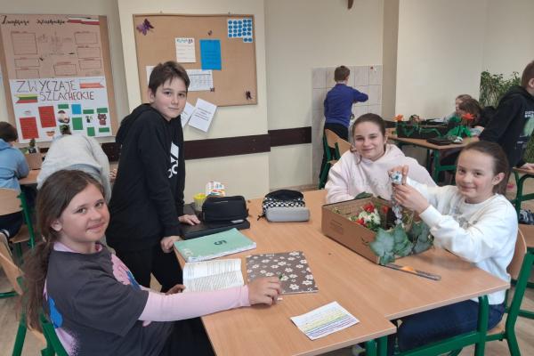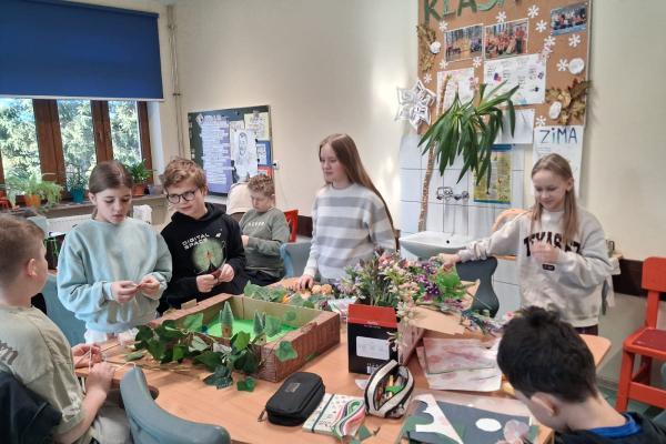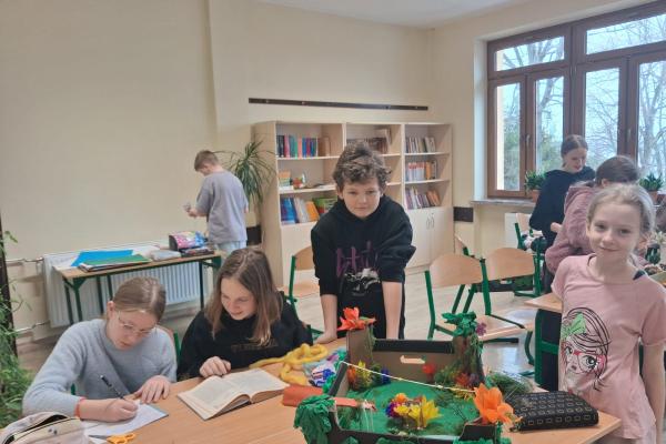 Marcowe lekcje języka polskiego w klasie Vb poświęcone były pracy z lekturą „Tajemniczy ogród”. Uczniowie, inspirując się historią bohaterów książki, zaangażowali się w projekt, którego efektem było wykonanie makiet przedstawiających tytułowy ogród.