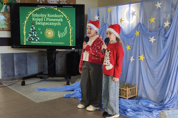 dodano dnia: 12 marca 2026 / 23:11Czytaj więcej12 grudnia 2025 roku w naszej szkole odbył się Szkolny Konkurs Kolęd i Piosenek Świątecznych, który wprowadził całą społeczność szkolną w radosny, bożonarodzeniowy nastrój. W wydarzeniu wzięli udział uczestnicy od przedszkolaków z klas 0, aż po uczniów klasy VIII, prezentując swoje umiejętności wokalne i muzyczne.