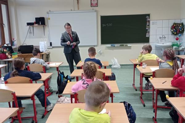 dodano dnia: 12 marca 2026 / 23:7Czytaj więcej17 grudnia 2025 roku w klasie Ib odbyło się spotkanie z panią Moniką Gut, mamą jednego z uczniów, pracującą w zawodzie recepcjonistki. Spotkanie zostało zorganizowane w ramach projektu „Poznajmy swoich rodziców”.