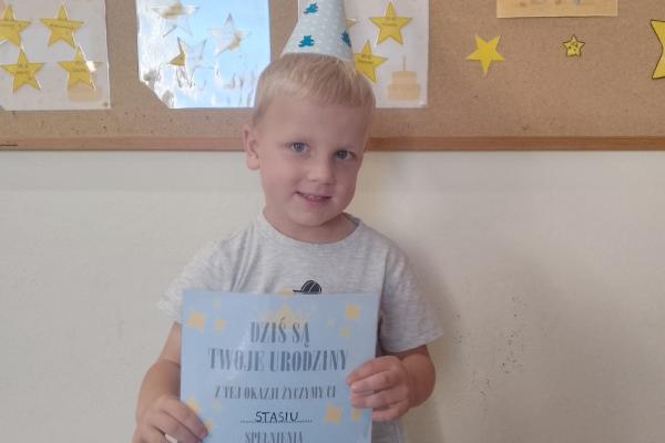 dodano dnia: 12 października 2025 / 21:46Czytaj więcejW naszym przedszkolu świętujemy każdy wyjątkowy dzień. 18 września obchodziliśmy urodziny Stasia. Były piosenki, zabawy i mnóstwo radości. Naszemu Solenizantowi życzymy „Sto lat” oraz wszystkiego najlepszego!